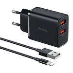 Ładowarka sieciowa Mcdodo CH-5071 USB-A*2, 12W + kabel USB-A do lightning (czarna)