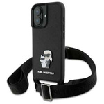 Etui Karl Lagerfeld iPhone 16 czarny/black hardcase Saffiano Karl&Choupette Metal Pin CBDY Strap