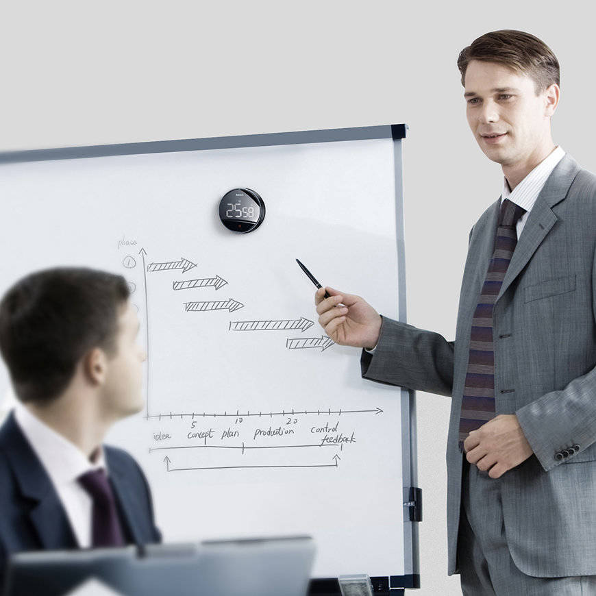 Dzięki namagnesowanym elementom obudowy, minutnik możesz swobodnie przyczepić do wszelkich powierzchni metalowych. Na drzwiach lodówki, tablicy w sali konferencyjnej czy kuchence mikrofalowej będzie on dobrze widoczny i stabilny. Możesz też mieć go zawsze pod ręką, gdy siedzisz przy stole, biurku lub na kanapie. Po prostu połóż go obok siebie.