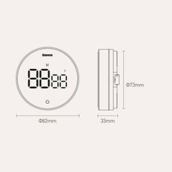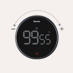Z minutnika Baseus możesz korzystać o każdej porze dnia i nocy. To zasługa wbudowanego oświetlenia LED. Ze względu na swój okrągły kształt, gadżet doskonale prezentuje się w każdej pozycji, gdziekolwiek go umieścisz. Dla dodatkowego komfortu użytkownika został wyposażony w sygnał dźwiękowy i możliwość dwojakiego odliczania — malejąco i rosnąco. Zakres odmierzanego czasu wynosi od 0 do 99:55 minut.