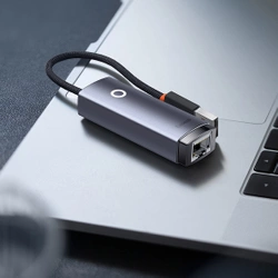 Baseus Lite Series adapter USB - RJ45 gniazdo LAN 100Mbps szary (WKQX000013)