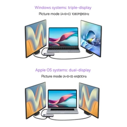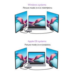 Jeżeli chcesz oglądać filmy na dużym ekranie prosto z Twojego laptopa – nie ma nic prostszego. Gadżet wyposażony jest w dwa gniazda HDMI, dzięki któremu będziesz mógł wygodnie podłączyć laptopa do telewizora i cieszyć się wysoką jakością odtwarzanych filmów. Dodatkowo, w przypadku podłączenia kolejnego monitora HUB może działać w trybach: rozszerzenia obrazu, bądź jego kopiowania.