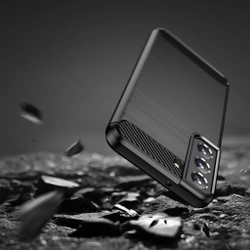 Carbon Case to wytrzymałe etui z eleganckimi wykończeniami imitującymi szczotkowany metal. Wykonany z wysokiej jakości materiałów (TPU) pokrowiec, który doskonale ochroni telefon przed upadkami, zarysowaniami czy brudem. Absorbuje wstrząsy, a specjalna struktura wewnątrz akcesorium pomaga rozłożyć siłę uderzenia. Do tego podwyższone krawędzie wokół ekranu i obiektywu aparatu oraz duże, responsywne przyciski.