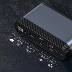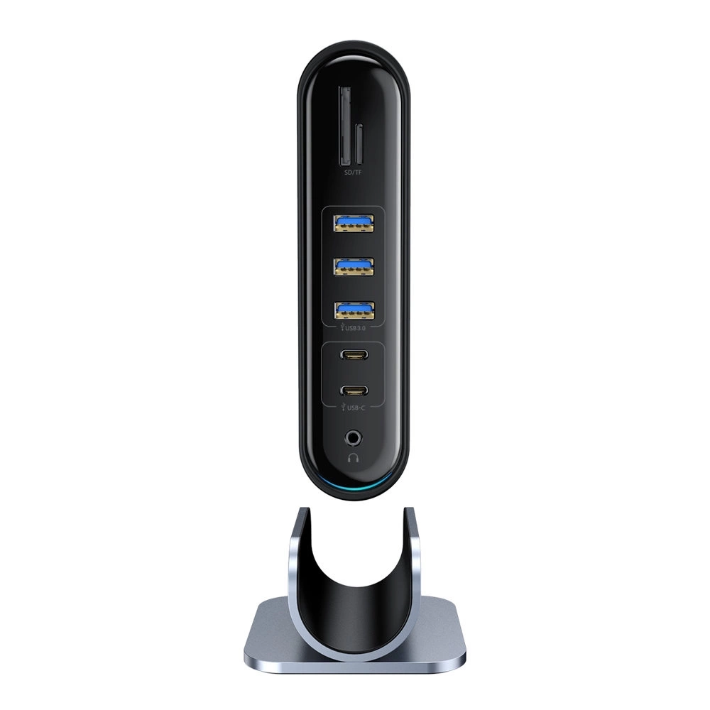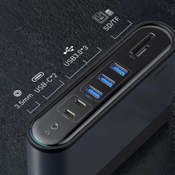 Do obsługi wielu urządzeń w domu i biurze doskonale sprawdzi się wielofunkcyjny HUB marki Baseus. Urządzenie powstało w odpowiedzi na oczekiwania współczesnych użytkowników, którzy chcą swobodnie korzystać ze swoich sprzętów elektronicznych i łączyć je między sobą. Stacja wyposażona w czytnik kart SD i Micro SD, kartę sieciową, dodatkowe porty USB i USB Typ C, 2x HDMI, 2x DisplayPort co pozwala na podłączenie do komputera nawet 4 dodatkowych monitorów! Łącznie ma aż 16 wejść. Praca i rozrywka wchodzą teraz na znacznie wyższy poziom niż miało to miejsce kiedykolwiek wcześniej.