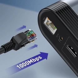 Adapter Baseus posiada wbudowaną kartę sieciową z portem RJ45, czyli może być podłączany bezpośrednio do sieci Ethernet. Zapewnia to szybkie i stabilne przesyłanie danych. Wysoką wydajność gwarantuje połączenie sieciowe 10/100/1000 Mb/s.