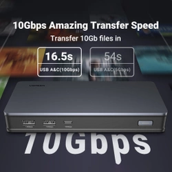Z Ugreen CM615 zyskujesz szybką i stabilną łączność, o jakiej marzysz. Z zawrotną prędkością transmisji 10 Gbps hub umożliwia błyskawiczne przesyłanie danych między urządzeniami, więc zapomnisz, czym jest czekanie! Port Ethernet zapewnia prędkość sieci do 1000 Mbps, zapewniając płynne i nieprzerwane połączenie z internetem, natomiast port PD 100 W umożliwia szybkie i efektywne ładowanie urządzeń. Twój czas jest cenny!