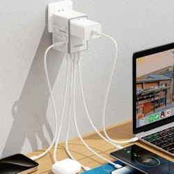 • Ładuje sześć urządzeń jednocześnie. Posiada trzy porty USB-C, dwa porty USB-A i jedno wyjście AC.