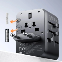 Uniwersalny adapter podróżny Joyroom JR-TCW02 o mocy do 65W z wtyczkami EU / US / JP / AU / UK / CN - czarny