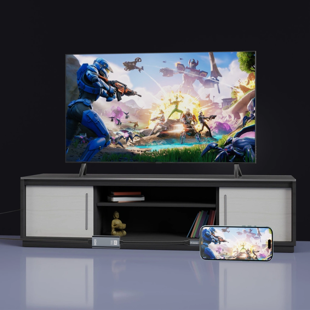 Adapter umożliwia przesyłanie obrazu w rozdzielczości 4K przy 60 Hz oraz Full HD 1080p, oferując płynny i szczegółowy obraz na telewizorze, monitorze czy projektorze.