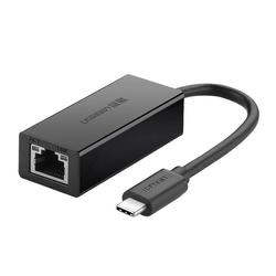 Adapter zewnętrzny Ethernet RJ45 do USB-C męski UGREEN 30287, 10/100 Mbps (czarny)