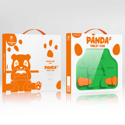 Obudowa jest zamknięta w kształcie miłej dla oka zabawkowej przytulanki, jest przy tym miła w dotyku i wygodna w użytkowaniu. Wysuwane „nóżki” pandy to jednocześnie podstawka, która pozwala na używanie sprzętów w pozycji stojącej – na przykład do oglądania bajek. Wkomponowane w plecy obudowy zwierzątko jest też mocowaniem na rysik, z którym dziecko może samodzielnie tworzyć, rysować i bawić się.