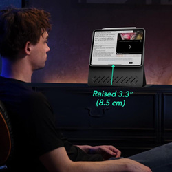 Podniesiony widok ekranu to kolejny atut tego etui. Specjalnie zaprojektowane, oferuje możliwość uniesienia urządzenia na wysokość linii wzroku. Takie rozwiązanie znacznie poprawia wygodę użytkowania, oraz wspomaga utrzymanie komfortowej pozycji, pozwalając Ci siedzieć wyprostowanym nawet podczas dłuższego czasu korzystania z urządzenia.