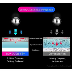 Niezwykle wytrzymałe szkło hartowane 9H marki Dux Ducis. Ochroni każdy ekran przed uszkodzeniem w czasie upadku. Szkło przejmuje na siebie energię wytworzoną przez uderzenie i rozkłada je na swojej powierzchni. Dzięki temu, pęka jedynie nałożone szkło, a nie cały wyświetlacz. Koszt wymiany tego gadżetu jest nieporównywalnie mniejszy niż zamontowanie nowego wyświetlacza! Znajduje się ono w eleganckim, sztywnym opakowaniu producenta co zapobiega uszkodzeniu w czasie transportu. W zestawie są dołączone ściereczki do wyczyszczenia ekranu LCD oraz naklejki do pozbycia się drobinek kurzu.