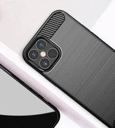 Carbon Case to wytrzymałe etui z eleganckimi wykończeniami imitującymi szczotkowany metal. Wykonany z wysokiej jakości materiałów (TPU) pokrowiec, który doskonale ochroni telefon przed upadkami, zarysowaniami czy brudem. Absorbuje wstrząsy, a specjalna struktura wewnątrz akcesorium pomaga rozłożyć siłę uderzenia. Do tego podwyższone krawędzie wokół ekranu i obiektywu aparatu oraz duże, responsywne przyciski.