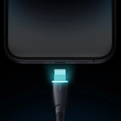 - Soft indicator na noc. Delikatne światło wskaźnika ułatwia korzystanie z kabla nawet w nocy, dzięki czemu ładowanie staje się komfortowe i bezproblemowe.