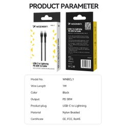 Kabel Wozinsky WNBCL1 zapewnia błyskawiczne ładowanie urządzeń Apple dzięki technologii USB-C do Lightning z funkcją Power Delivery 30W. Zaprojektowany, aby wytrzymać intensywne użytkowanie: jego nylonowa powłoka jest do 10 razy trwalsza niż standardowe kable. Niezawodność w każdych warunkach, wysoka jakość transmisji danych oraz mocne, wytrzymałe złącza czynią ten kabel niezastąpionym akcesorium dla każdego użytkownika urządzeń Apple.