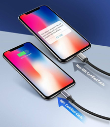 Kabel USB Typ C - Lightning z certyfikatem MFI (Made for iPhone), przyznawanym przed firmę Apple wyłącznie sprawdzonym, najwyższej jakości akcesoriom. Przewód został wykonany z mocnego materiału i zakończony wtyczką we wzmocnionej obudowie. Idealnie sprawdza się zarówno w przypadku przesyłania danych, jak i ładowania naszego sprzętu. Do tego duża wytrzymałość, stylowy design i mamy pełen obraz nowego produktu firmy Ugreen.