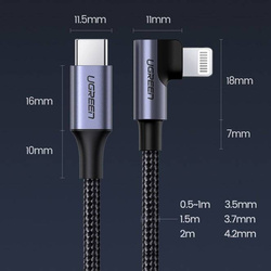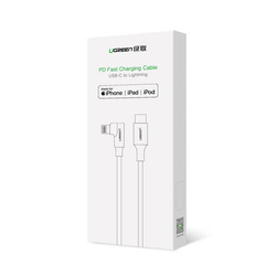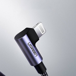 Ugreen MFI kątowy kabel przewód z bocznym wtykiem USB Typ C - Lightning Power Delivery 3 A 1 m