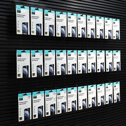 Szkła hartowane dostępne są w zbiorczym opakowaniu, w którym znajduje się aż 40 sztuk. Jest to zestaw przeznaczony głównie do sprzedaży hurtowej. Pudełko idealnie nadaje się do wykorzystania na witrynie sklepowej, gdzie ciekawie i estetycznie się prezentuje.