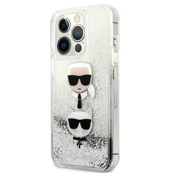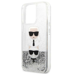 Nieszablonowe etui ozdobione jest uroczą grafiką Karla i jego kotki Choupette, podkreśloną przez drobinki płynnego, lśniącego brokatu, który zmienia swoje ułożenie pod wpływem zmiany kąta nachylenia.