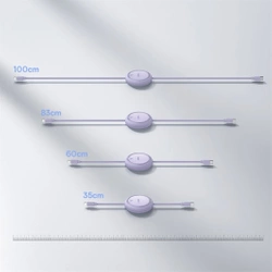 Zwijana konstrukcja kabla Baseus Free2Pull to świetne rozwiązanie dla tych, którzy cenią sobie porządek i wygodę. Umożliwia płynne zwijanie i rozwijanie kabla - wystarczy pociągnąć jedną stronę lub obie strony, aby osiągnąć odpowiednią długość. Kabel ma cztery ustawienia długości: 100 cm, 83 cm, 60 cm oraz 35 cm, co pozwala na elastyczne dostosowanie go do różnych potrzeb. Wbudowany podwójny turbinowy mechanizm zapewnia płynność przez ponad 50000 cykli, co oznacza, że kabel jest nie tylko praktyczny, ale i trwały.