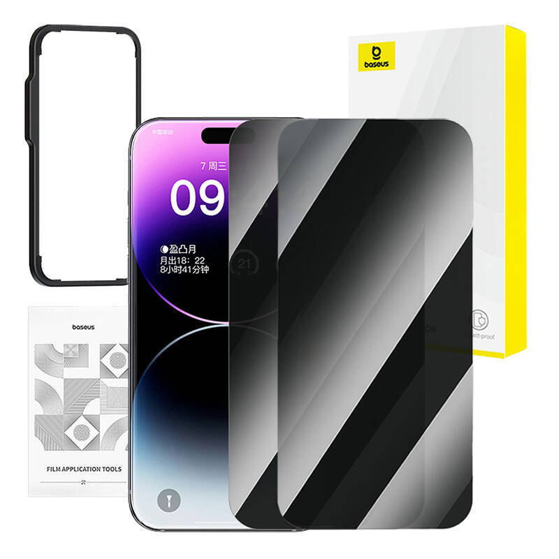 Prywatyzujące szkło hartowane Baseus Superior do iP 14 Pro +2xzestaw czyszczący i EasyStick
