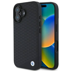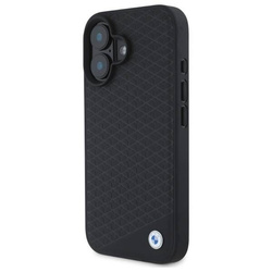 • Etui BMW iPhone 16 6.1" czarny/black hardcase Sign Leather Diamond Metal Logo MagSafe