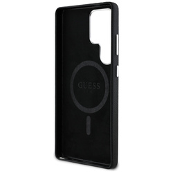 W dolnej części etui znajduje się naszywka z logo Guess, która subtelnie podkreśla prestiż tego etui.