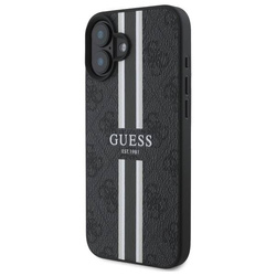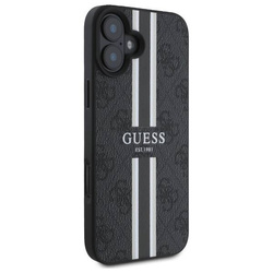 • Etui Guess iPhone 16 6.1" czarny/black hardcase 4G Printed Stripes MagSafe