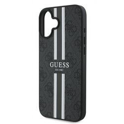 Etui Guess iPhone 16 Plus czarny/black MagSafe 4G Printed Stripes