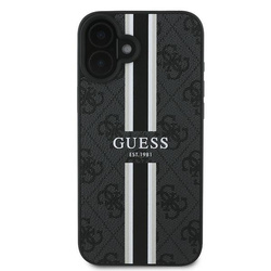 • Etui Guess iPhone 16 Plus czarny/black MagSafe 4G Printed Stripes