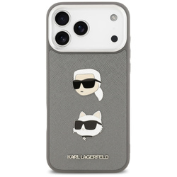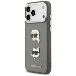 Etui Karl Lagerfeld FW Grained Karl & Choupette Heads Pins & Logo do iPhone 17 Pro Max szary