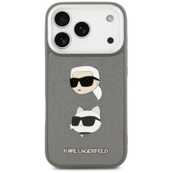 • Etui Karl Lagerfeld FW Grained Karl &    Choupette Heads Pins & Logo do iPhone 17 Pro szary