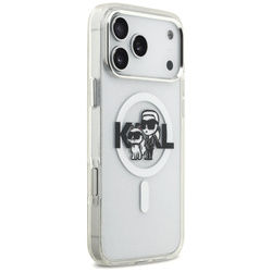 • Etui Karl Lagerfeld IML Glitter Karl &   Choupette Sketch Logo MagSafe do iPhone 17 Pro Max przezroczysty