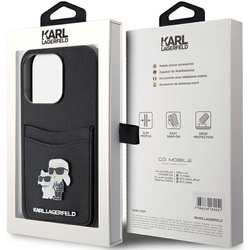 Kolekcja Karl Lagerfeld Saffiano Cardslot Karl&Choupette Metal Logo to doskonały sposób na podkreślenie swojego przywiązania do tego cenionego domu mody oraz nadanie Twojemu iPhone'owi nowego designu. Na pleckach pokrowca umieszczono dużą naszywkę z podobizną postaci projektanta i jego ukochanej kotki. Metalowy emblemat doskonale komponuje się z całą stylistyką pokrowca, dodając mu wyrazistego charakteru. Ten pokrowiec to połączenie stylu, ochrony i efektownego wyglądu.