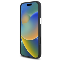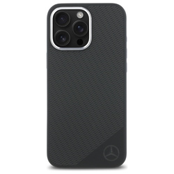 • Etui Mercedes iPhone 16 Pro 6.3" czarny/black hardcase Silicone Tonal Logo Wood Pattern MagSafe