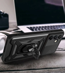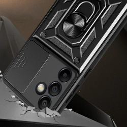 Etui pancerne Hybrid Armor Camshield z osłoną aparatu i metalowym ringiem do Samsung Galaxy S24 FE - czarne