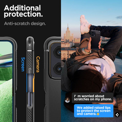 Stosunkowo cienkie etui ochronne. Wykonane z wytrzymałego i elastycznego tworzywa TPU odpornego na ścieralność. Rugged Armor pokryty jest błyszczącym włóknem węglowym, które tworzy elegancką teksturę karbonową. Produkt jest idealnie dopasowany, w pełni funkcjonalny, nie ogranicza dostępu do portów zewnętrznych i skutecznie chroni urządzenie przed zarysowaniami czy upadkami. Rugged Armor kusi nowoczesnym wzornictwem!