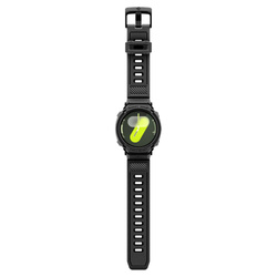 Wygodny pasek o sportowym zacięciu Spigen Rugged Armor "Pro". Wykonany z elastycznego materiału TPU zdobionego akcentami z włókna węglowego. Posiada zintegrowaną obudowę z uwydatnionymi rantami, która pozwala na ochronę koperty zegarka przed zarysowaniami oraz uderzeniami.