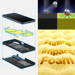 Nieco podniesiona forma obudowy wokół aparatu i ekranu chroni go przed zarysowaniami, unosząc telefon tuż nad powierzchnią płaską. Posiada osłony na przyciski i wycięcia na porty.