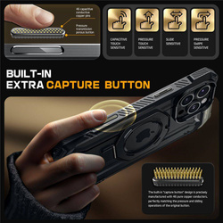Supcase UB Grip Magsafe to etui, które łączy w sobie wytrzymałość, funkcjonalność oraz elegancki design. Wykonane z odpornego na uderzenia materiału TPU, posiada wzmocnione narożniki, które zapewniają ochronę przed upadkami zgodnie z normami wojskowymi MIL-STD 810G (do 15 stóp). Plecki etui są przezroczyste i matowo-czarne, co nadaje urządzeniu nowoczesny wygląd, jednocześnie chroniąc telefon przed zarysowaniami.