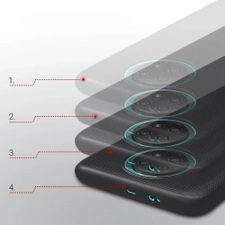 Nakładka chroni obudowę telefonu przed porysowaniem, a w razie upadku urządzenia na ziemię absorbuje większą część energii uderzenia. Minimalizuje to możliwość uszkodzenia telefonu i znacząco wpływa na wydłużenie jego żywotności. Tył pokryty jest perforowaną powłoką antypoślizgową, która zapewnia pewne utrzymanie telefonu w dłoni.