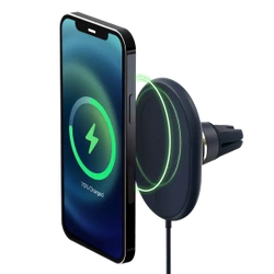 Velox Wireless Air Vent Mount to magnetyczny uchwyt do telefonu z bezprzewodowym szybkim ładowaniem dla iPhone'ów kompatybilnych z MagSafe. Wystarczy przyłożyć urządzenie do uchwytu Velox, a on sam zatrzaśnie się w idealnym położeniu, zapewniając do 7,5W bezprzewodowej mocy. Bezprzewodowy uchwyt Velox Air Vent Mount jest łatwy w instalacji poprzez proste wsunięcie wtyków na kratkę wentylacyjną, gdzie silikonowe uchwyty zapobiegają ześlizgiwaniu się. Przegub kulowy na uchwycie wentylacyjnym pozwala na dostosowanie uchwytu do idealnej i bezpiecznej pozycji podczas jazdy samochodem. Silikonowa powierzchnia zapewnia delikatny dotyk, który chroni iPhone'a przed zarysowaniami, a aluminiowa obudowa skutecznie odprowadza ciepło. Teraz łatwiej niż kiedykolwiek możesz mieć swój telefon pod ręką w podróży.