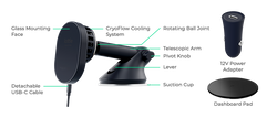 Velox Pro to kompatybilny z MagSafe uchwyt na deskę rozdzielczą i przednią szybę, który łączy szybkie ładowanie bezprzewodowe z naszą zaawansowaną technologią chłodzenia CryoFlow™, zapewniając doskonałe wrażenia z ładowania.