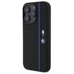 Etui BMW iPhone 16 Pro Max czarny/black hardcase Silicone Hexagon Blue Line MagSafe