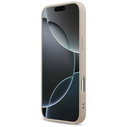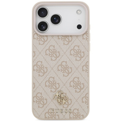 W dolnej części etui znajdują się logo Guess oraz złota naszywka 4G, które subtelnie podkreślają prestiż tego etui.
