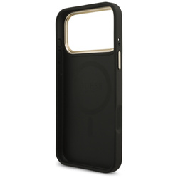 W dolnej części etui umieszczono ozdobny emblemat Guess, dekorowany połyskującymi kryształkami.