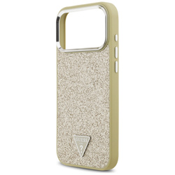 Etui Guess Glitter Triangle Logo MagSafe do iPhone 17 Pro Max złoty
