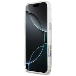 W centralnej części etui znajdują się logo Guess oraz brokatowy pierścień MagSafe, które subtelnie podkreślają prestiż tego etui.