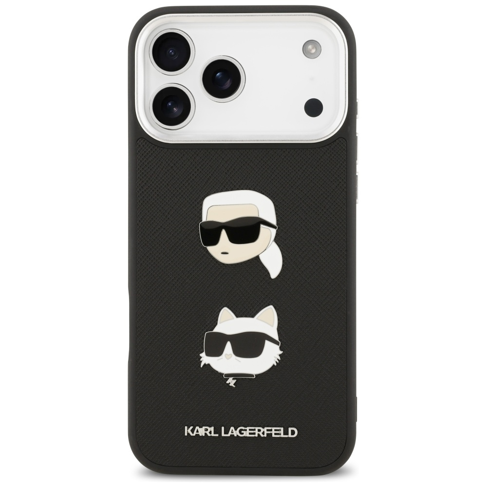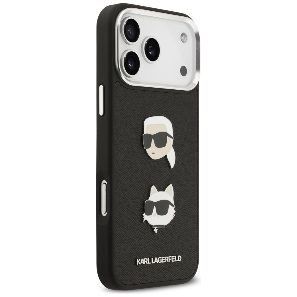 • Etui Karl Lagerfeld FW Grained Karl &    Choupette Heads Pins & Logo do iPhone 17 Pro Max czarny